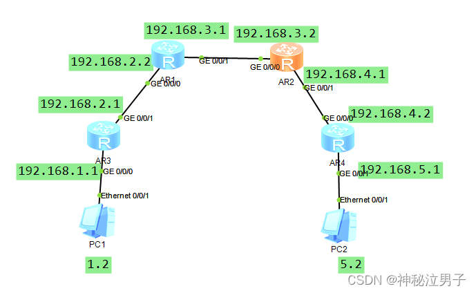 - [Huawei]ip route-static 192.168.5.0 24 192.168.4.2