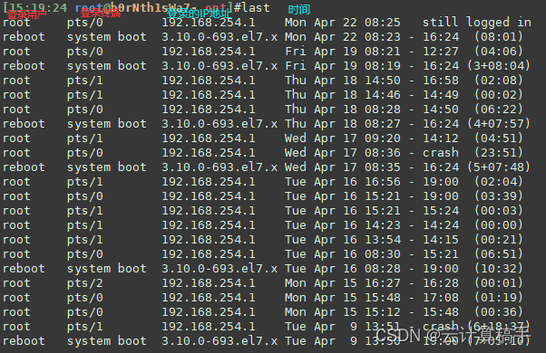 last 命令用于查询成功登录到系统的用户记录