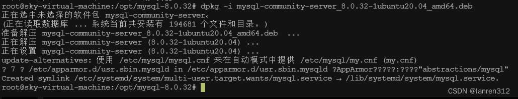 - dpkg -i mysql-community-server_8.0.32-1ubuntu20.04_amd64.deb