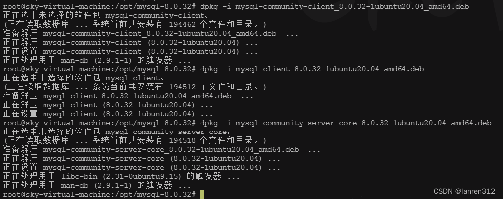 - dpkg -i mysql-client_8.0.32-1ubuntu20.04_amd64.deb