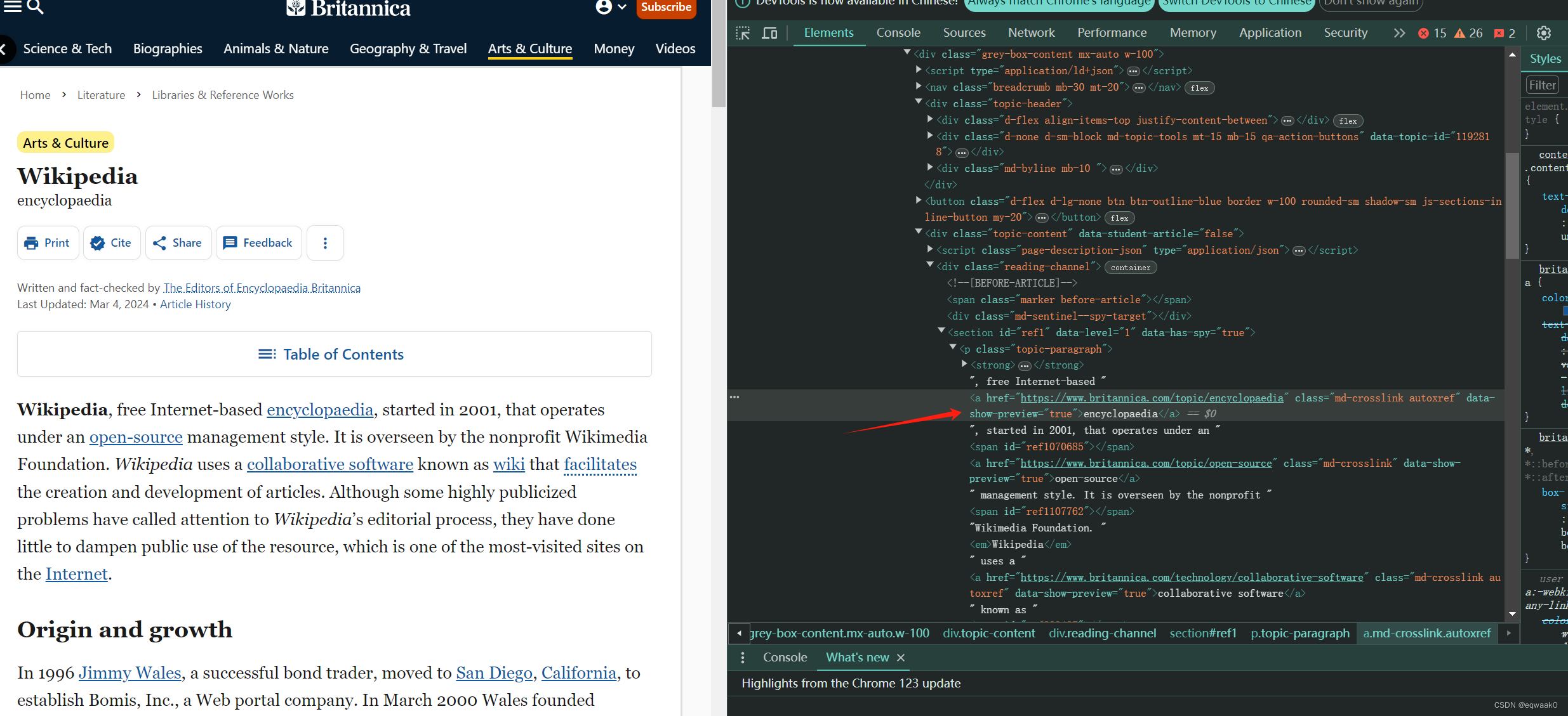 实战网页链接:https://www.britannica.com/topic/Wikipedia