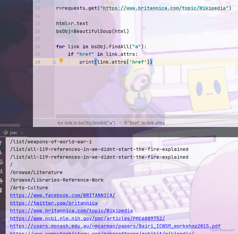 url放入link_eqwaak.txt文件里面,直到深度大于或等于2.