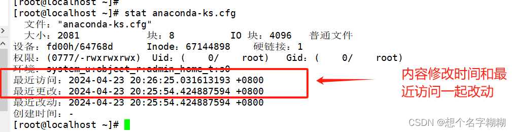 - [root@localhost ~]# stat anaconda-ks.cfg