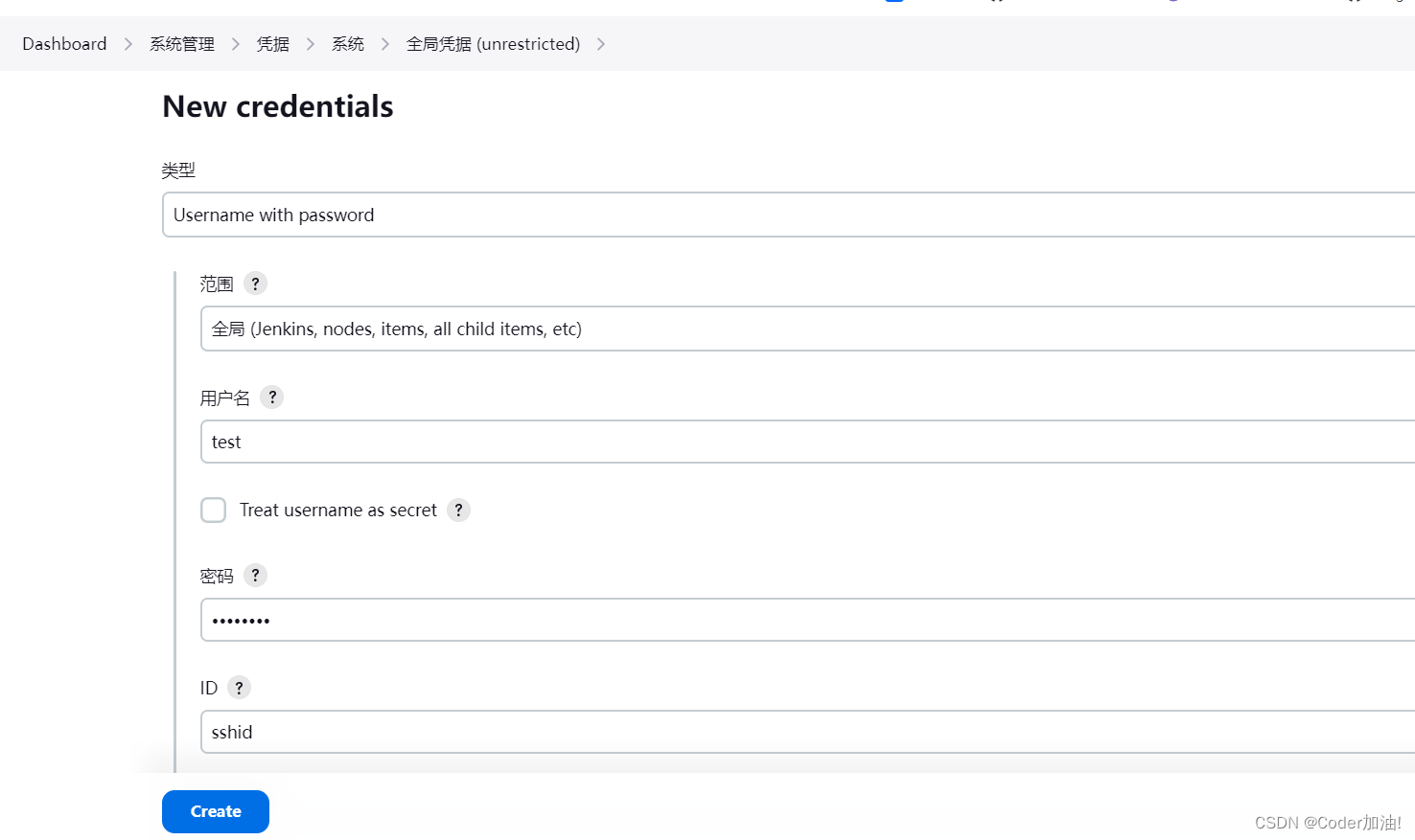 withCredentials 步骤从 Jenkins 凭据中获取用户名和密码,并将它们绑定到变量 SSHUSER 和 SSHPASS。