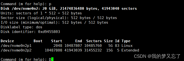 查看磁盘分区情况,p2不能使用,它是扩展分区