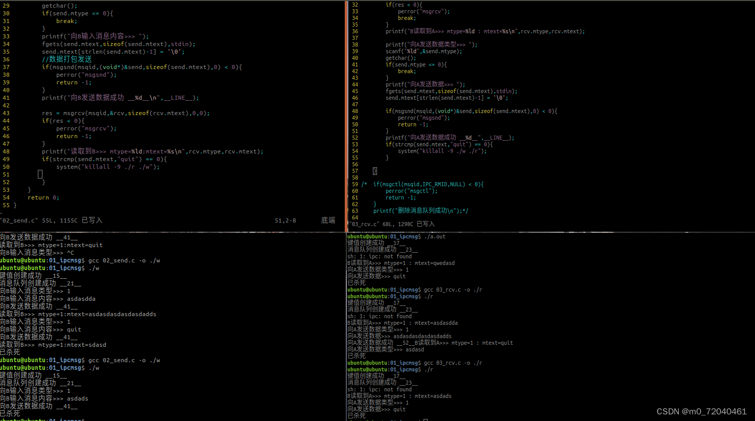printf("B读取到A>>> mtype=%ld : mtext=%s\n",rcv.mtype,rcv.mtext);