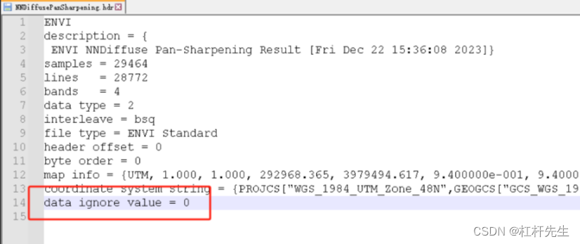 关闭融合后的影像,右键单击该影像的 hdr 参数文件,如下图所示,增加一行 data ignore value = 0,保存即可;