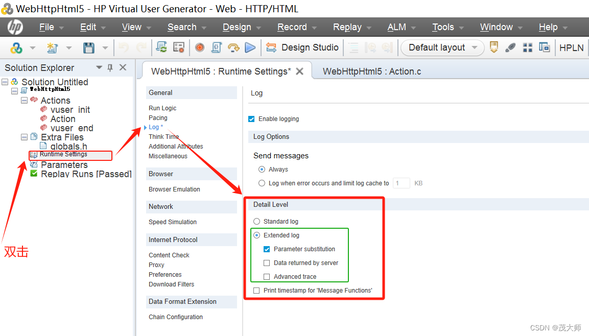 - 使用 lr_log_message() 函数自定义日志并打印