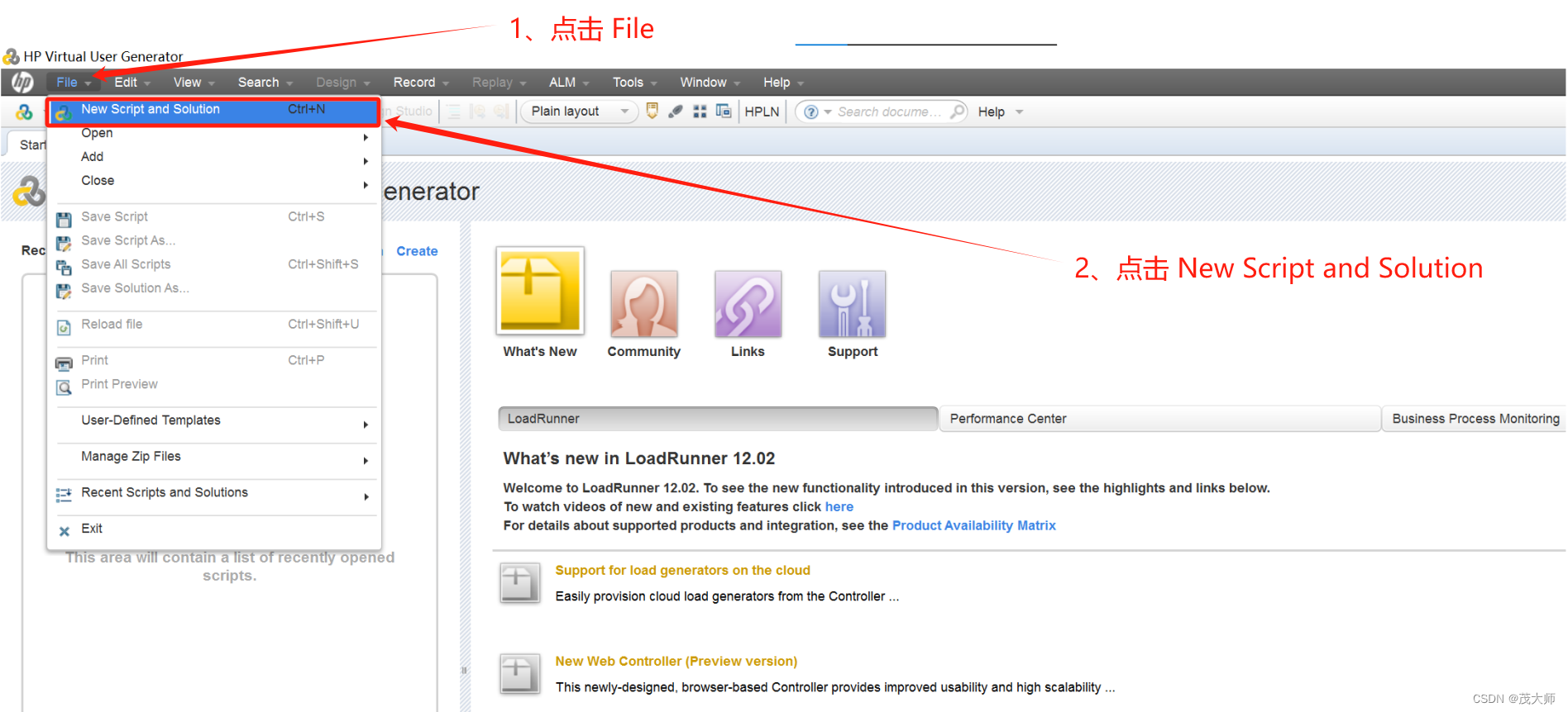 - Virtual User Generator ——> 录制脚本(编写脚本)
