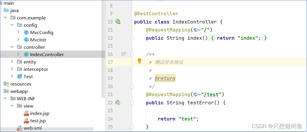 ① 在Controller包下创建控制器类如:xxxIndexController.java