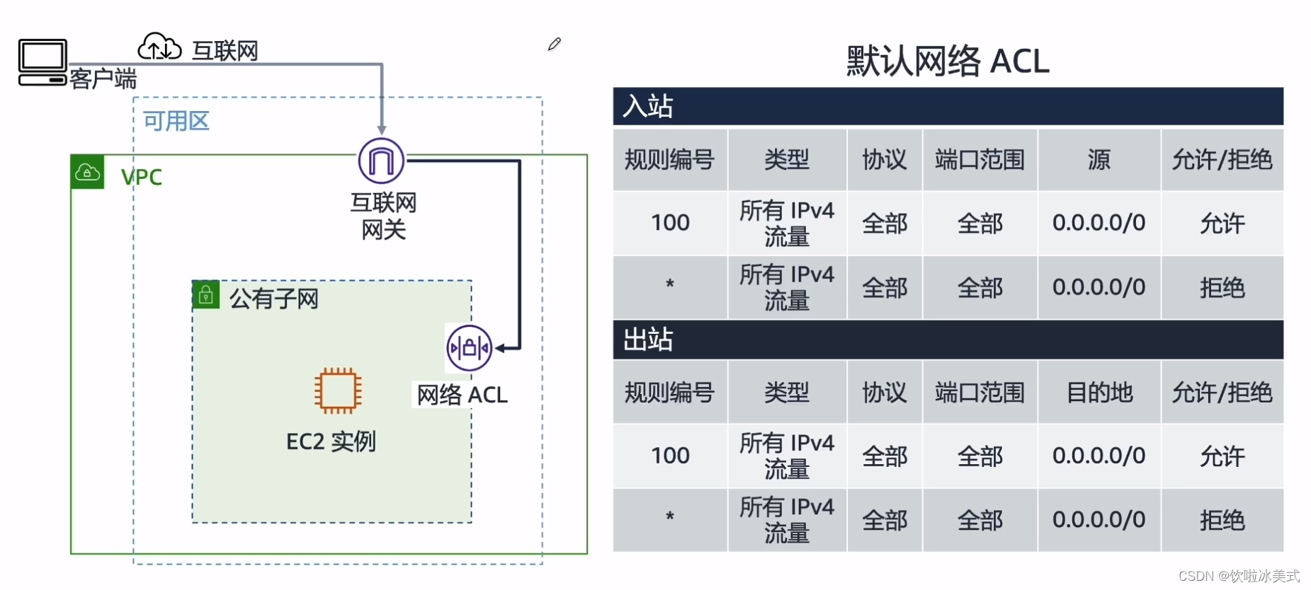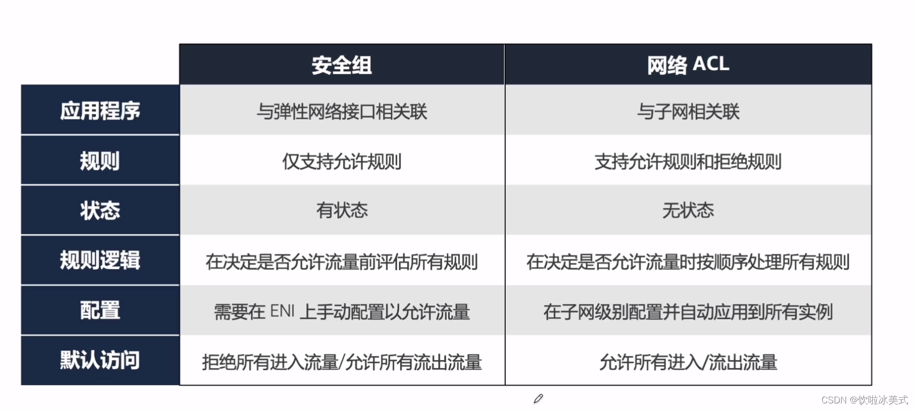 2、安全组只会允许。网络ACL允许明确拒绝。