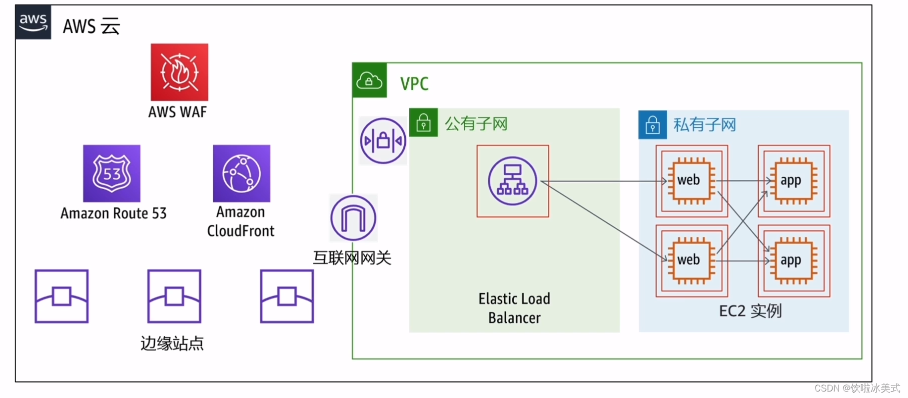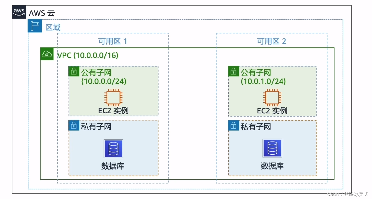 其中私有子网的内容不需要直接与互联网通信,比如说数据库