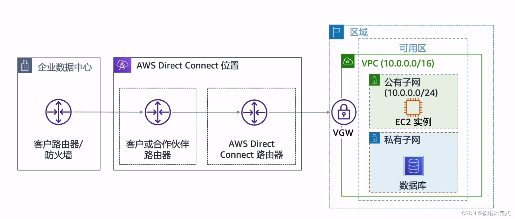 VPC全称为virtual private cloud,虚拟私有域。就像买了一个房子,你可以规定哪个房间作为私有空间(私有子网),而客厅作为公有空间(公有子网)。