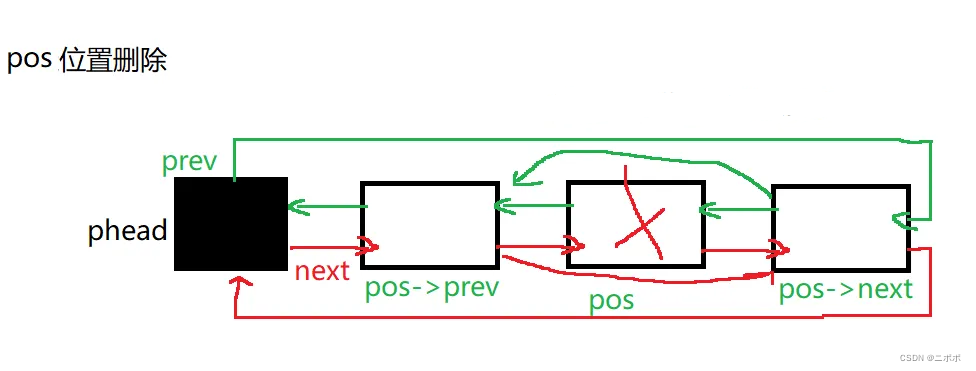 - //pos->prev pos pos->next