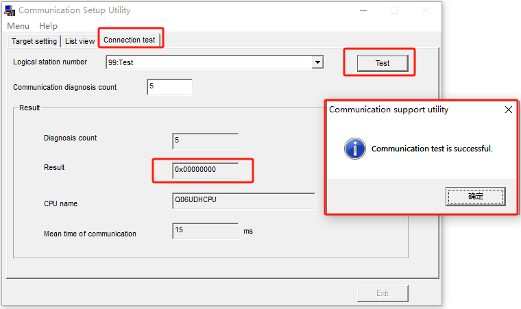 (5)配置完成后,进行测试,显示successful表示连接成功;连接成功后可以关掉该软件,不影响正常通讯;