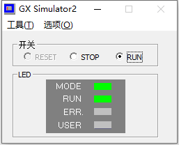 (4)调试中选择=>模拟开始,出现Simulator窗口,Mode和RUN绿灯长亮即表示仿真正常;