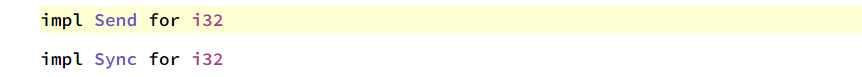 i32 类型实现了 Sync ,所以在线程间共享 i32 值是安全的。