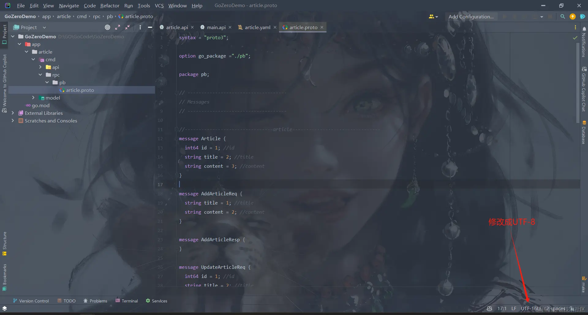 这是自动生成的article.proto文件, ** 你也可以根据自己的需求往里面增加内容**