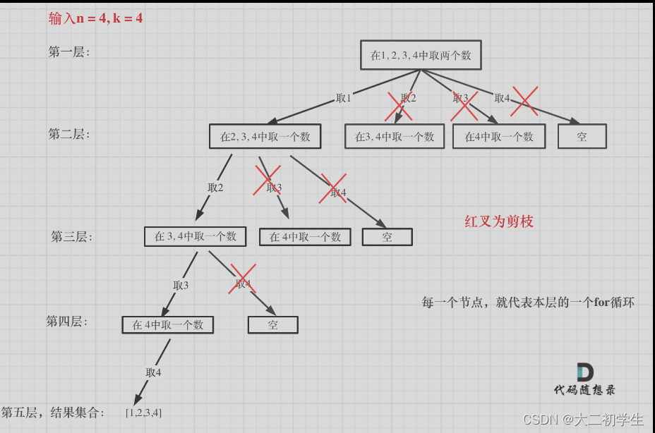 3.所以至多从n - (k - tmp.size()) + 1 处开始遍历,再往后挪就不可能符合条件了。