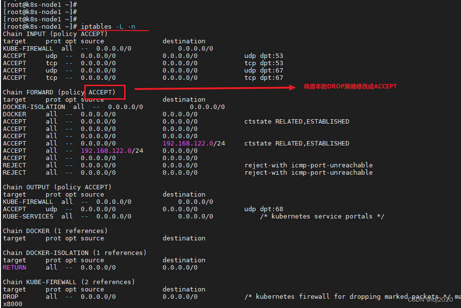 如果出现iptables 如下,我这个默认是ACCEPT,所以不用修改