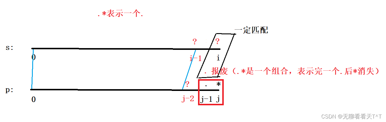 - 此时p[j-1]和p[j]位置报废,若dp[i][j-2]为真则dp[i][j]为真,即p的[0,j-2]范围内的字符能否与s的[0,i]范围内的字符匹配