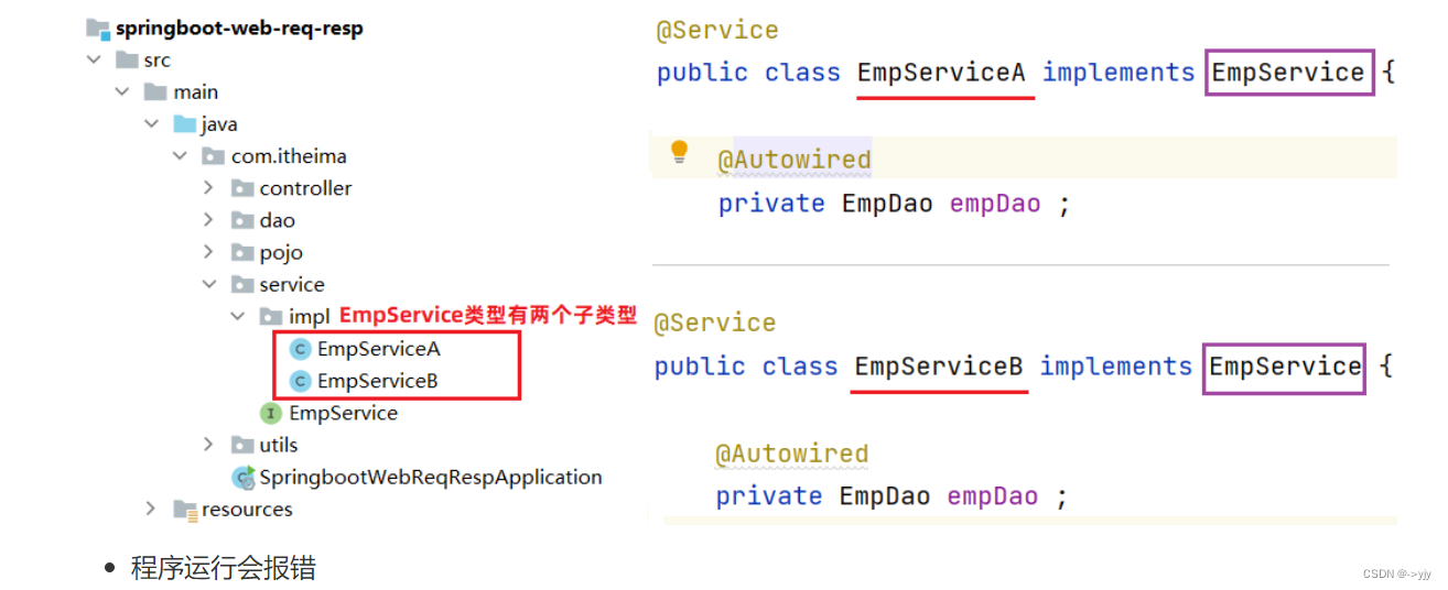 把业务类变为EmpServiceB时,需要修改controller层中的代码