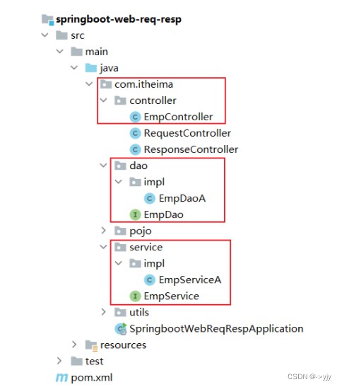 将我们定义的controller,service,dao这些包呢,都放在引导类所在包com.itheima的子包下,这样我们定义的bean就会被自动的扫描到