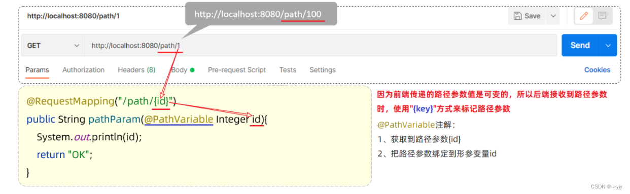 - public String simpleParam(String name , Integer age ){//形参名和请求参数名保持一致