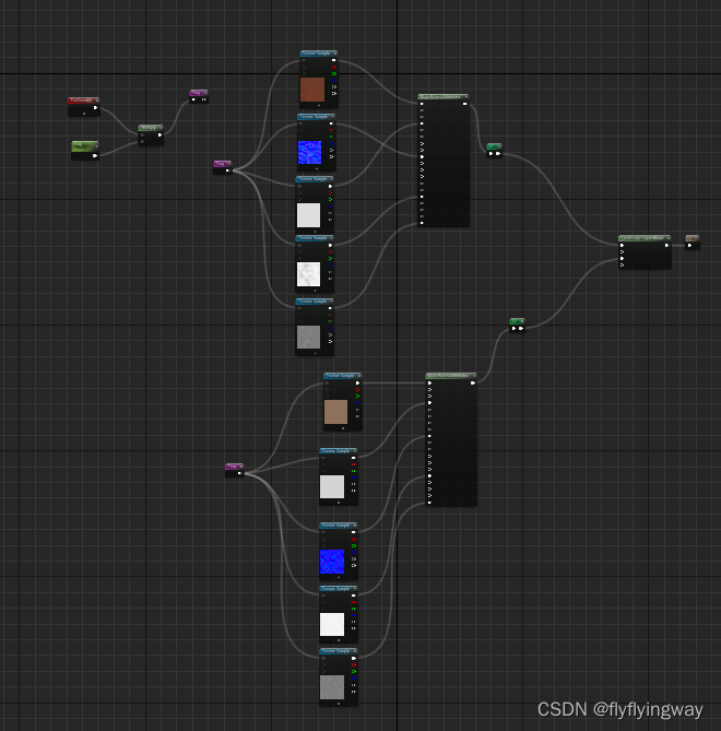 2.总之,找到需要的材质后,将其导入ue中,并创建一个新的材质作为混合材质的基础,把每种图片连到相应的属性上:
