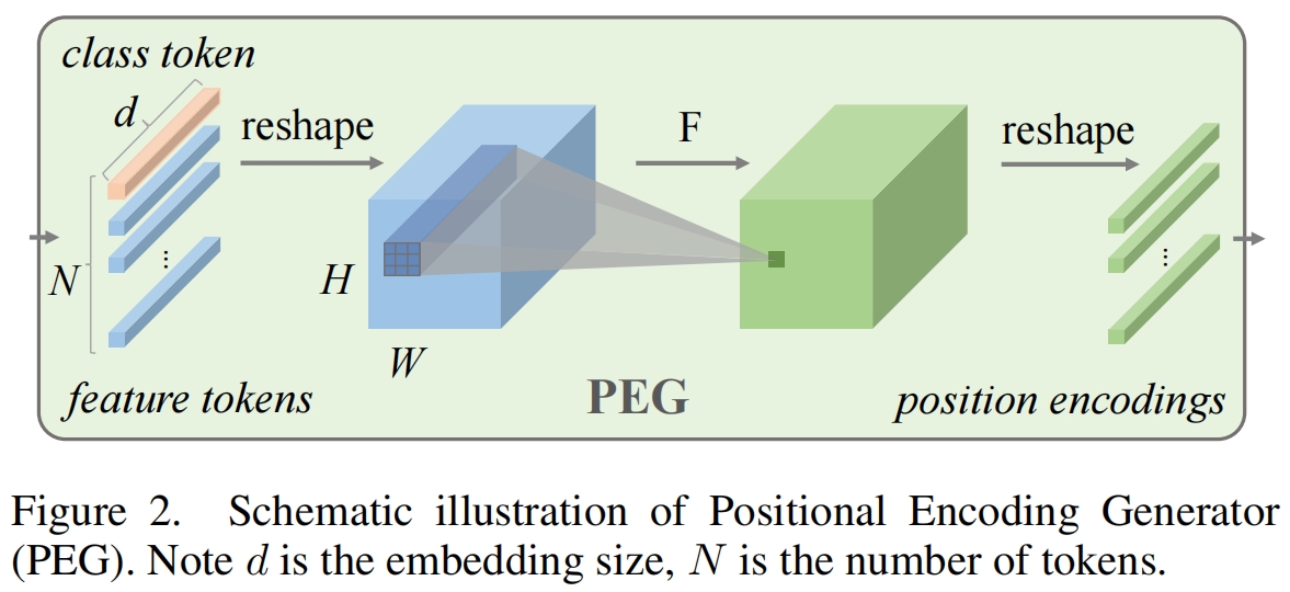 因此作者提出了位置编码生成器(PEG)来动态地生成基于输入token的局部邻域的位置编码。PEG如图2所示,我们首先将DeiT中展平后的输入序列