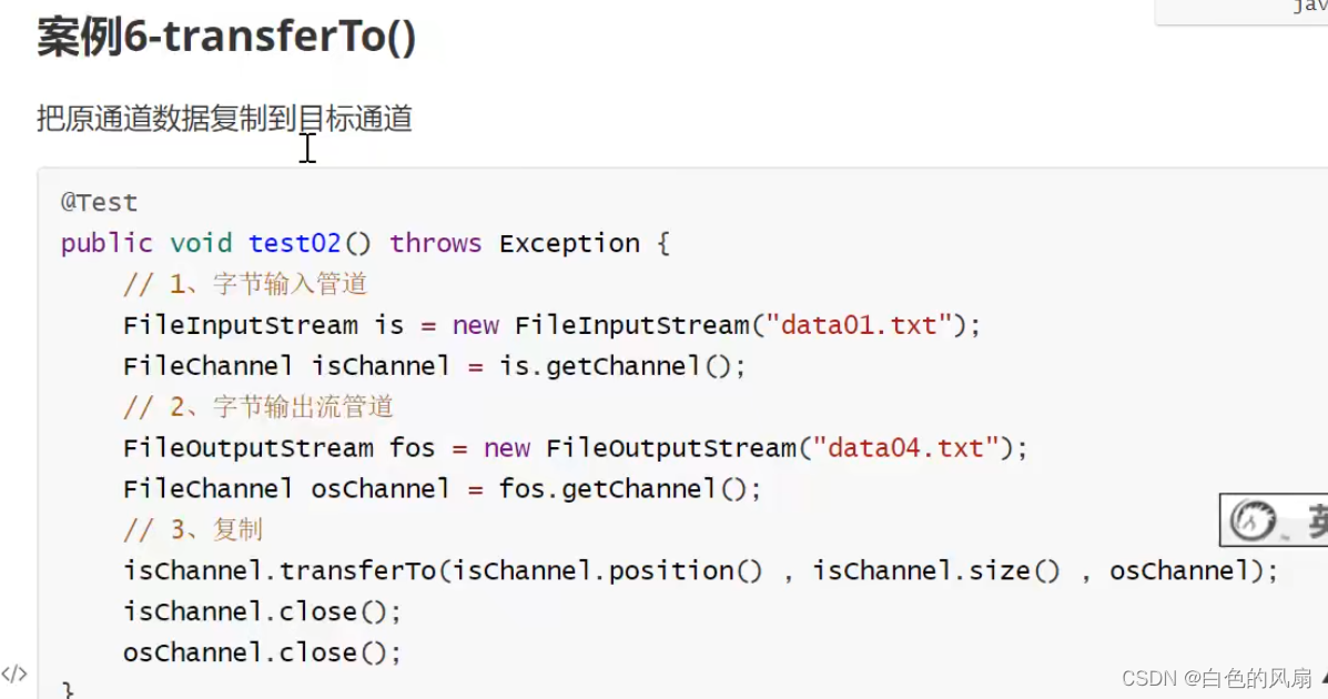 当Buffer装入这些数据结束后,条用Buffer的flip()方法,该方法将limit设置为position所在位置,评奖position设为0,这就是的Buffer的读写指针又移到了开始的位置,也就是卓,Buffer调用flip()方法之后,BUffer为输出数据做好准备,当Buffer输出数据结束之后,Buffer调用clear方法,clear()不是将Buffer里面的数据清空,它仅仅只是将position的位置设置为0,后面的数据会将position后面的数据覆盖,将limit设置为capacity,这样就为后面再一次装入数据做好准备