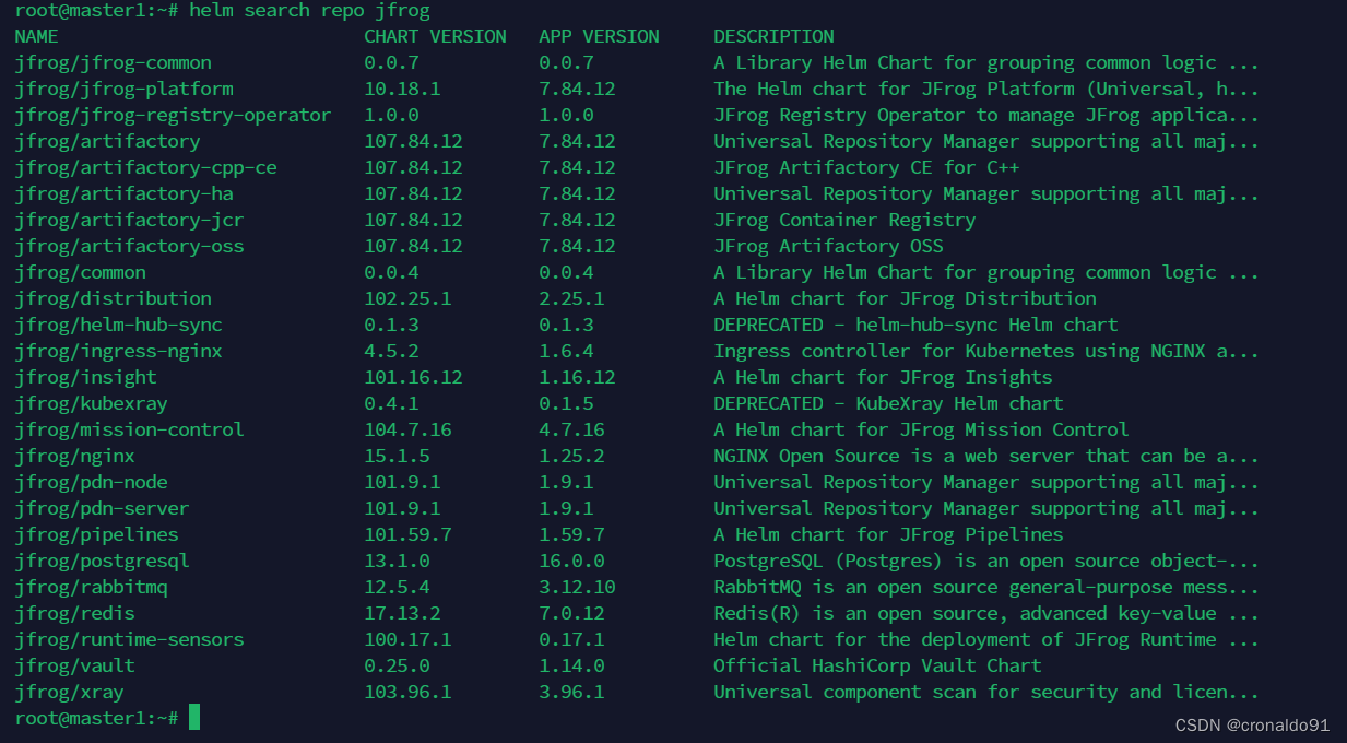 | master1 | K8S master节点 | 1.23.1 | 192.168.204.102 | 需求部署JFrog Artifactory - 对二进制文件、制品和依赖项进行通用管理 |