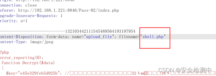 当我们上传php时,显示只允许上传jpg,本来想进行常规的前后端修改绕过,但抓包发现了../upload,这就能联想到使用00截断。