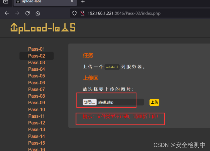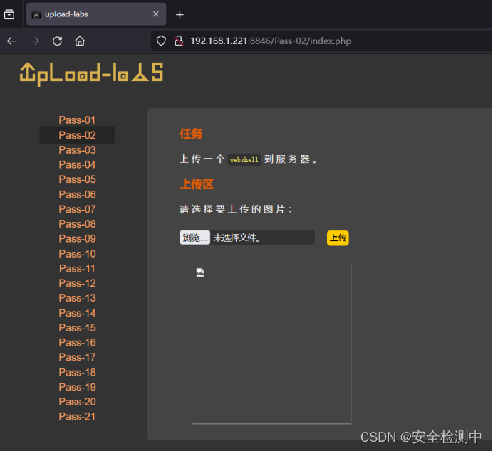 若实验中遇到与我一样的问题(报错)可参考:upload-labs实验过程中遇到的问题-CSDN博客