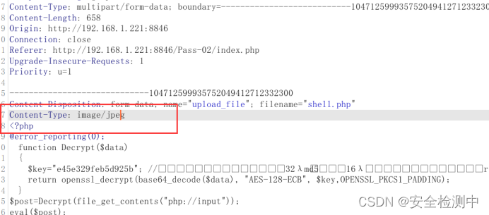 发现可以,那太没意思了,我们可以尝试换一种方法,直接上传php文件,因为是后端验证,主要是验证Content-type的值,所以我们改Content-type值试试。