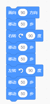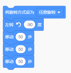 下面地图中每格的长度是50步长,小猫要想拿到苹果,下面哪组程序可以实现?( )
