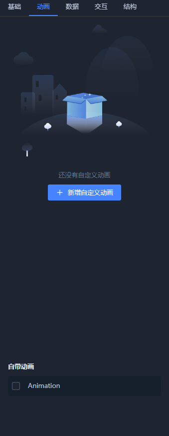 在乐吾乐3D可视化编辑器中,动画分为两种,一种是自定义动画,一种是自带动画。