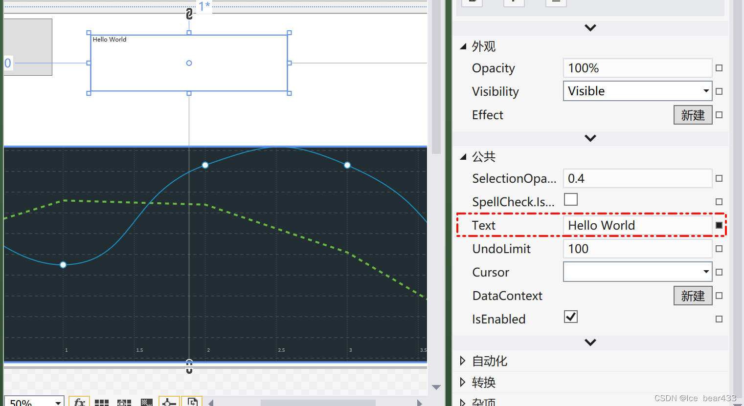 在这个示例中,我们定义了一个 TextBox 控件,其默认文本为“Hello, World!”。