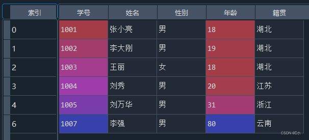 - data = pd.read_excel('学生信息表.xlsx')