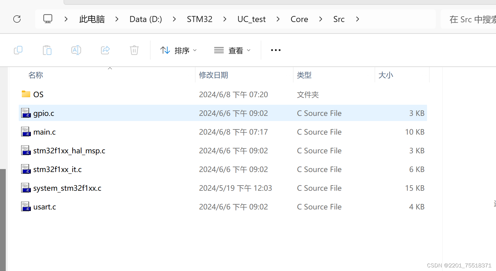 1、在生成的keil工程文件夹f103c8_uCOSIII_1_test中新建一个 UCOSIII 的文件夹,将我们下载的源代码中三个文件夹: Uc-CPU、 uC-LIB、 Ucos-III 复制到我们新建的文件夹中: