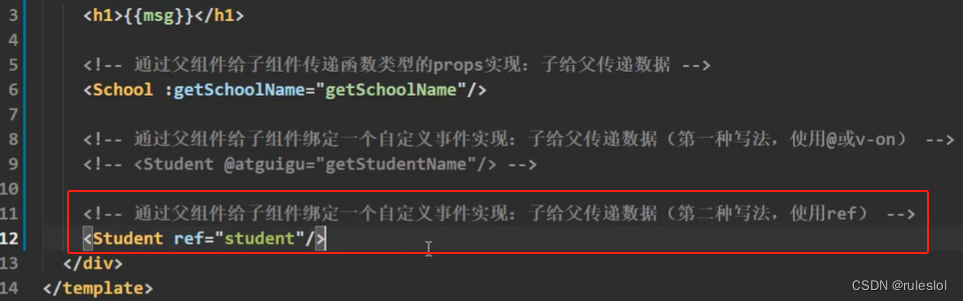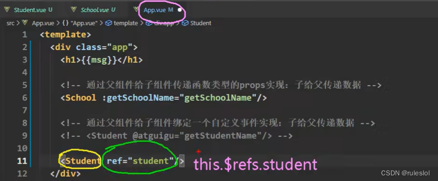 加了ref属性,则App.vue的实例对象,就能通过ref得到student组件的实例对象!