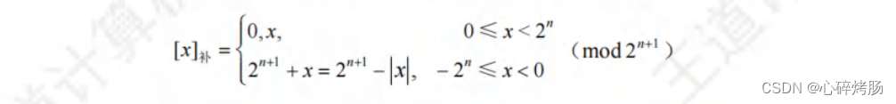 综合上述定义可知,无论是正数还是负数,[x]补=2ⁿ⁺¹+x (-2ⁿ ≤x< 2ⁿ,mod 2ⁿ⁺¹)。