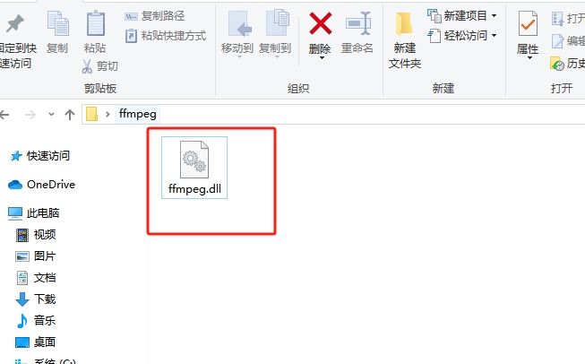 2.复制文件到系统目录:将下载的 ffmpeg.dll 文件复制到系统目录中。