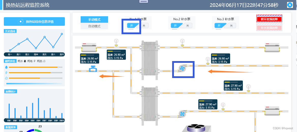 关闭水泵1,观察管道和风扇情况及监控表数值
