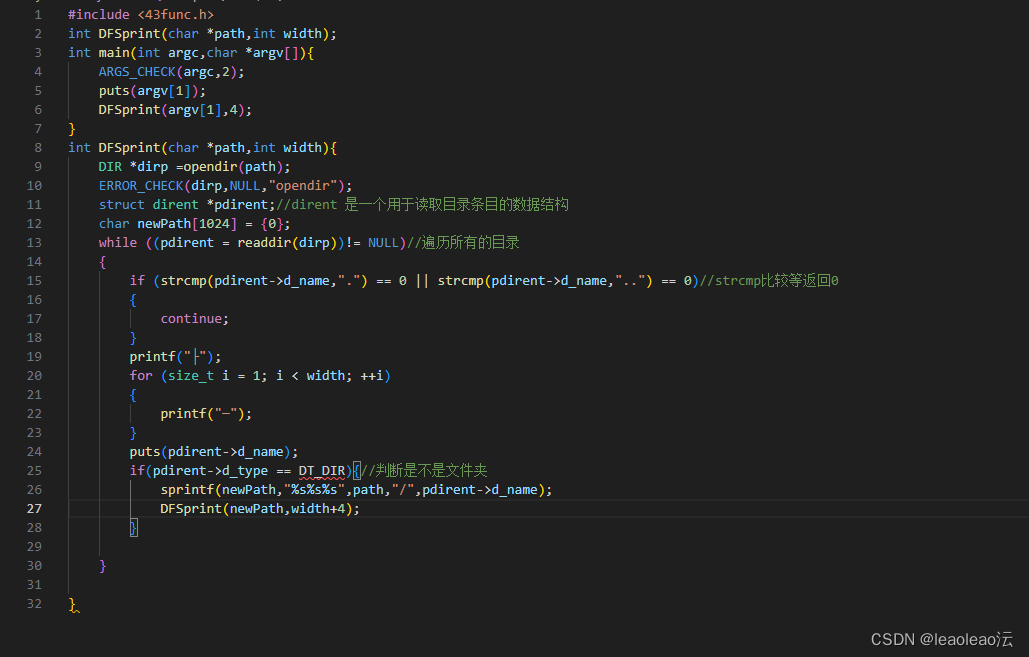 - ret = stat(pdirent->d_name, &statbuf);//文件名只有在当前目录下才是路径