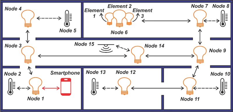 图 3.智能家居中蓝牙 IoT 网络节点的示例。