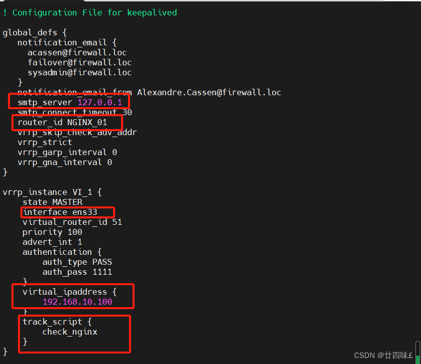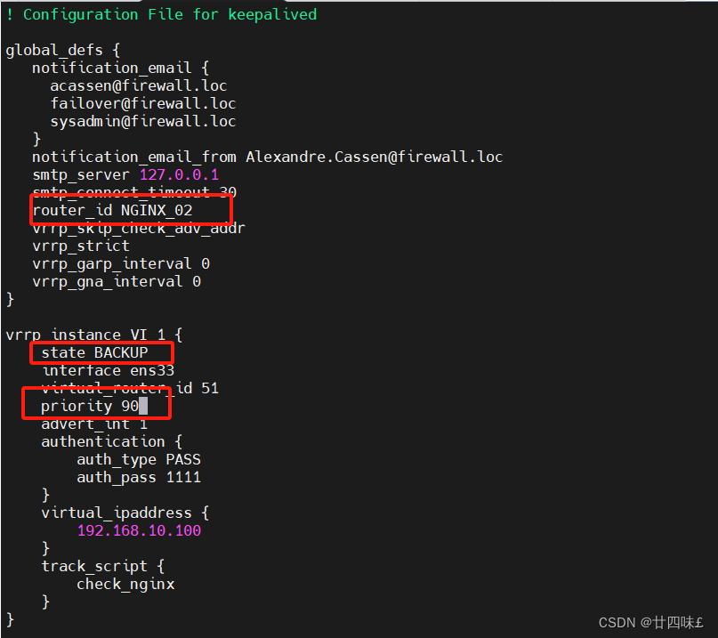 修改配置文件 keepalived.conf