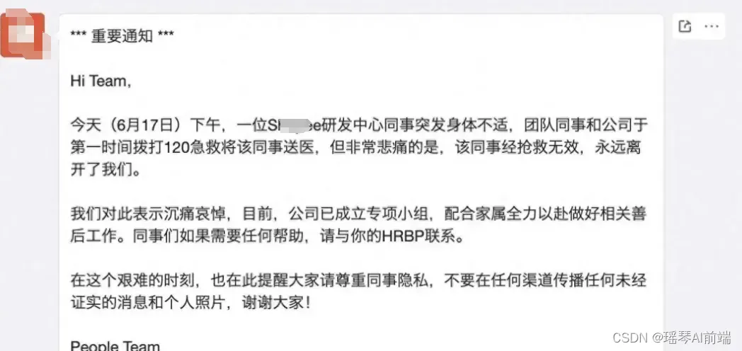 1. 跨境电商企业sh**ee一研发人员猝死