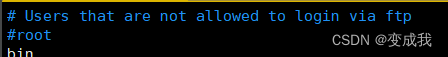 在用户列表文件(/etc/vsftpd/user_list)内也能看到相关注释